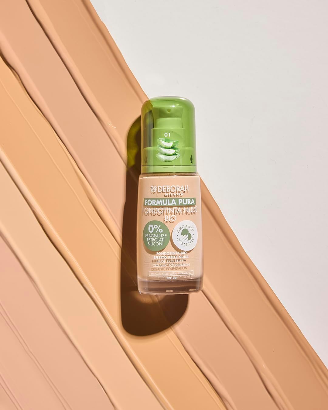 Fondotinta Nude Bio Formula Pura è il nuovo fondotinta di Deborah che combina una nuova formula bio ad una texture fluida dal finish naturale dalla coprenza media che permette alla bellezza naturale di risplendere. Arricchito con principi attivi nutrienti e antiossidanti, come l’Aloe vera biologica e le vitamine C ed E, in grado di nutrire la pelle conferendole un aspetto impeccabile. Privo di siliconi, petrolati e fragranze aggiunte, l’esclusivo fondotinta risulta adatto a tutti i tipi di pelle, anche a quelle più sensibili. Anche il pack in vetro e con componenti di plastica riciclata sancisce in modo definitivo la costante ricerca di Deborah Milano Formula Pura nell’offrire ai propri consumatori delle soluzioni altamente performanti, più sostenibili e rispettose dell’ambiente.